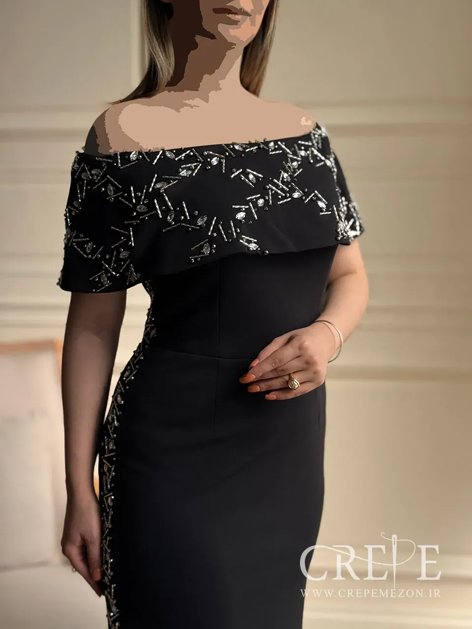 این لباس مجلسی در سایزهای 40 و 48 موجود است، بنابراین میتواند مناسب برای طیف وسیعی از سایزهای بدن باشد و تناسب خوبی با فرمهای مختلف داشته باشد. یقه قایقی این پیراهن، استایلی کلاسیک و شیک دارد که به خوبی با طراحی مدرن و جزئیات سنگ دوزی ترکیب شده است. روی یقه، سنگهای تزیینی کار شده است که درخشندگی و جذابیت خاصی به لباس میبخشد. این سنگ دوزیها، با دقت و هنر بر روی پارچه قرار گرفتهاند و جلوهای لوکس و مجلل دارند. رنگ این پیراهن مشکی است، که همواره نماد شیکپوشی و کلاس است و با هر نوع آرایشی و اکسسوری، هماهنگ میشود.
