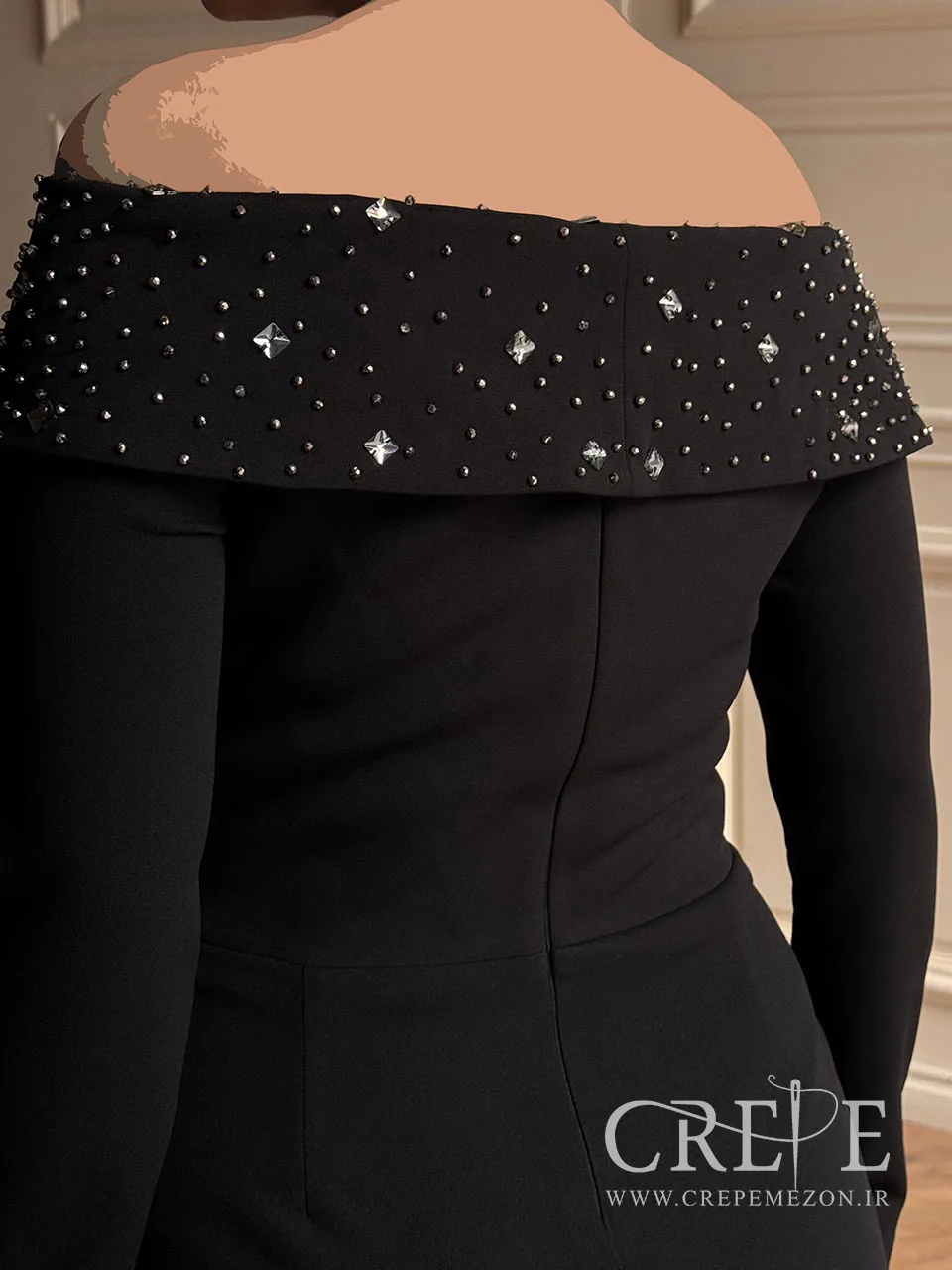 همچنین آستر داخلی به حفظ کیفیت و جلوگیری از شفافیت بیش از حد پیراهن کمک میکند. طراحی یقه قایقی به پیراهن ظاهری مدرن و شیک میبخشد و به خوبی گردن را نمایان میکند. قسمت یقه با زیپ و نگین طراحی شده است که به جذابیت و شیکی بیشتر پیراهن افزوده و به آن جلوهای خاص میبخشد. این جزئیات به پیراهن ظاهری لوکس و مجلسی میدهد. آستینهای بلند این پیراهن به آن ظاهری مجلسی و خاص میدهد. این طراحی باعث میشود که پیراهن به خوبی بر روی بدن نشسته و به شما فرم زیبا و زنانهتری ببخشد.