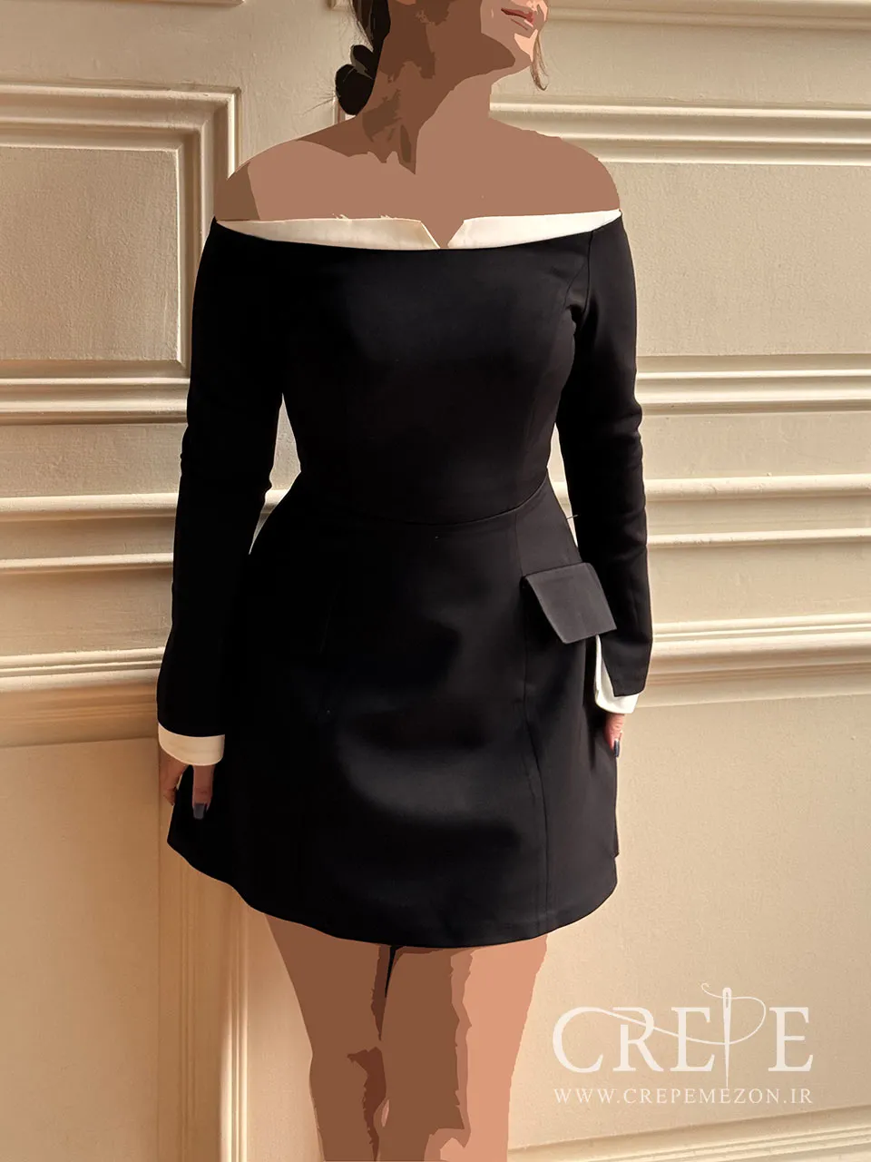 همچنین آستر داخلی به حفظ کیفیت و جلوگیری از شفافیت بیش از حد این لباس مجلسی کوتاه کمک میکند. طراحی یقه قایقی به پیراهن ظاهری مدرن و شیک میبخشد و به خوبی گردن را نمایان میکند. لبه این یقه با پارچه سفید طراحی شده که تضاد زیبایی با پارچه مشکی پیراهن ایجاد میکند و به جذابیت آن میافزاید. آستینهای بلند این لباس مجلسی کوتاه به آن ظاهری مجلسی و خاص میدهد. این طراحی باعث میشود که پیراهن به خوبی بر روی بدن نشسته و به شما فرم زیبا و زنانهتری ببخشد. پیراهن به صورت اندامی طراحی شده که به خوبی فرم بدن را نمایان میکند و به شما ظاهری جذاب و شیک میدهد.