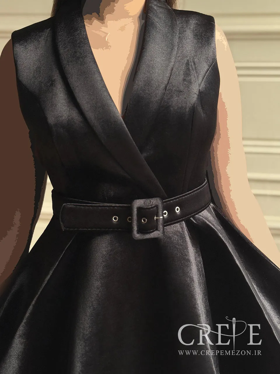 فرم ساعت شنی: این پیراهن با یقه آرشال به خوبی کمر را نمایان میکند و با طراحی عروسکیاش، به این فرم بدنی زیبایی و جذابیت میبخشد.