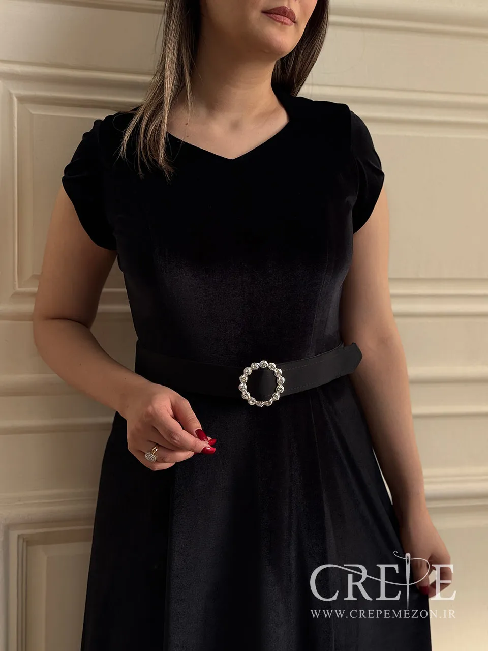 پیراهن مخمل یقه دلبری یک لباس مجلسی که از جنس مخمل اعلا بوده و در سایزبندی 44-38 و رنگ مشکی موجود است. این پیراهن زیبا به عنوان سارافون نیز استفاده می شود.