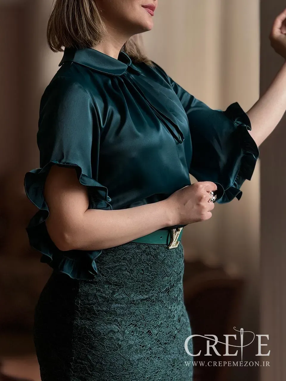 همه ی ما میدانیم که ساتن جزو انتخاب های شیک و اولین گزینه های لباس های شب و مجلسی است. پارچه نرم و درخشان آن کار خیاطان را برای دوخت و دوز راحت کرده است. همچنین ریزش دلبرانه ای که این پارچه ی پرطرفدار دارد نیز از دیگر دلایل محبوبیت این پارچه است. ساتن انواع مختلفی دارد که نحوه قرار گیری تار و پور آن باعث می شود، ریزش و درخشش این پارچه کم و زیاد شود. ساتن این پیراهن کوتاه از انواع مختلف پارچه ی ساتن است که در کنار جلا و براقیت منحصر بفردی که دارد، نرمی، لطافت کشش و ریزش نیز دارد. این پارچه ی پرطرفدار جذب تن نمیشود اما روی بدن به خوبی فیکس میشود و ایراداتی اندامی را تا حد ممکن کاور میکند.