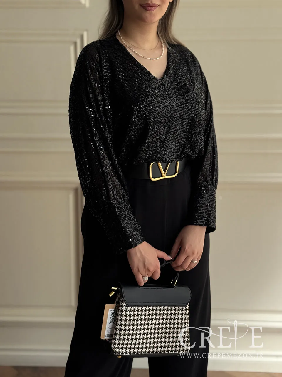 سرهمی بالا تنه پولکی یک اورال مجلسی شیک که از ترکیب دو پارچه پولکی و دالقیچ دوخته شده و برای تولد، افتتاحیه و دورهمی های خودمانی گزینه ایده آلی محسوب میشود.
