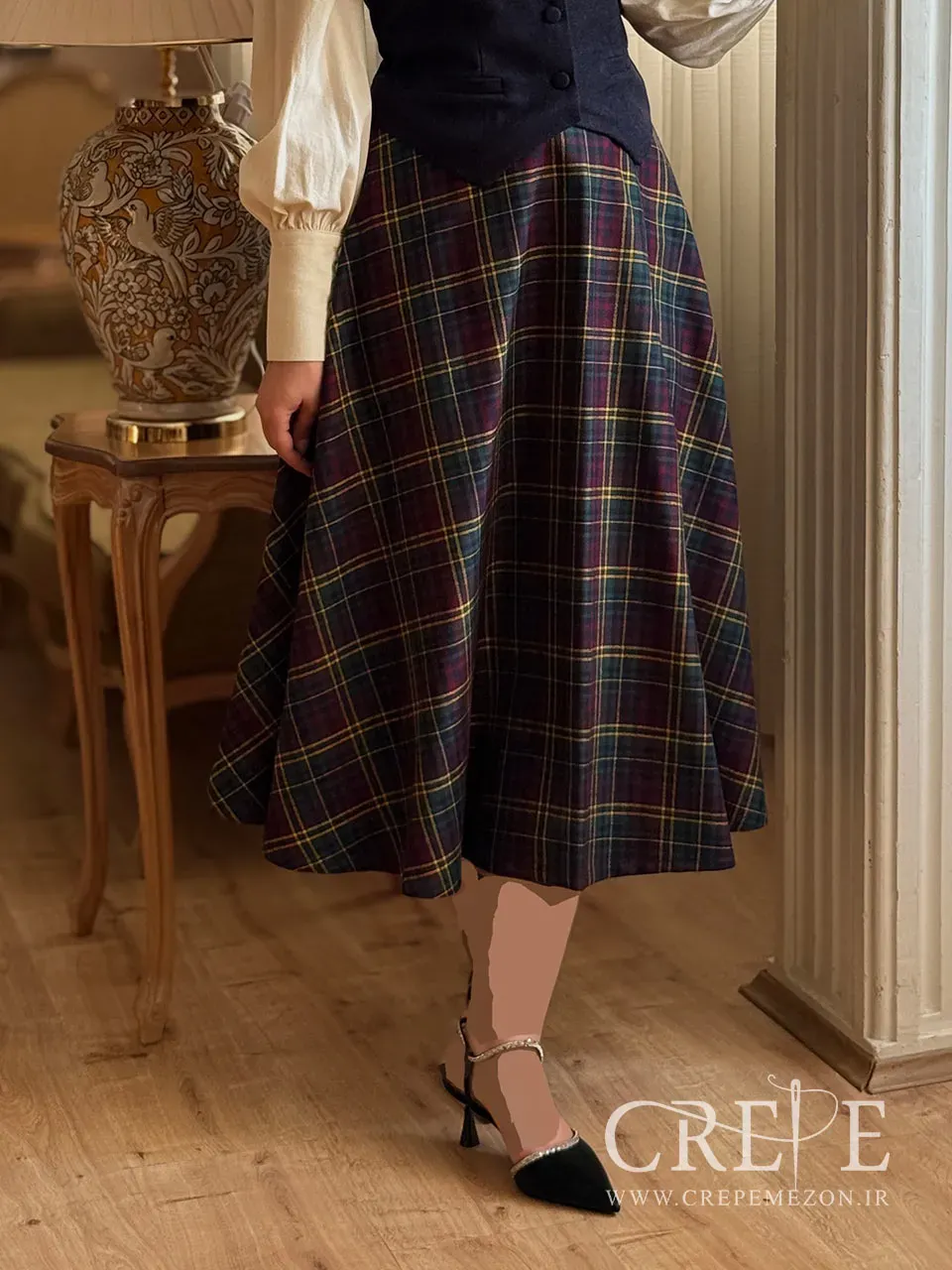 دامن کلوش کشمیر چهارخونه چه ویژگی دارد؟