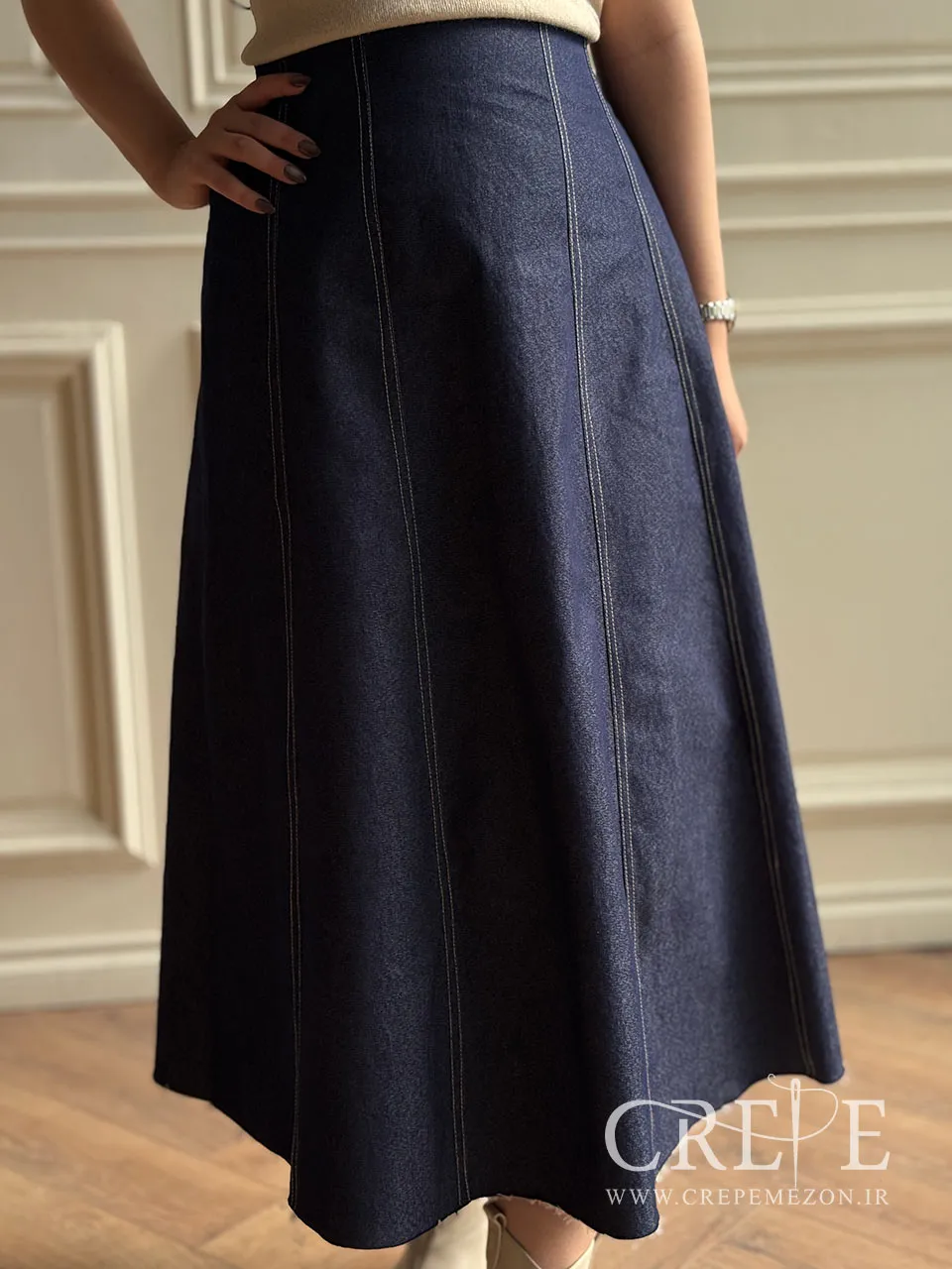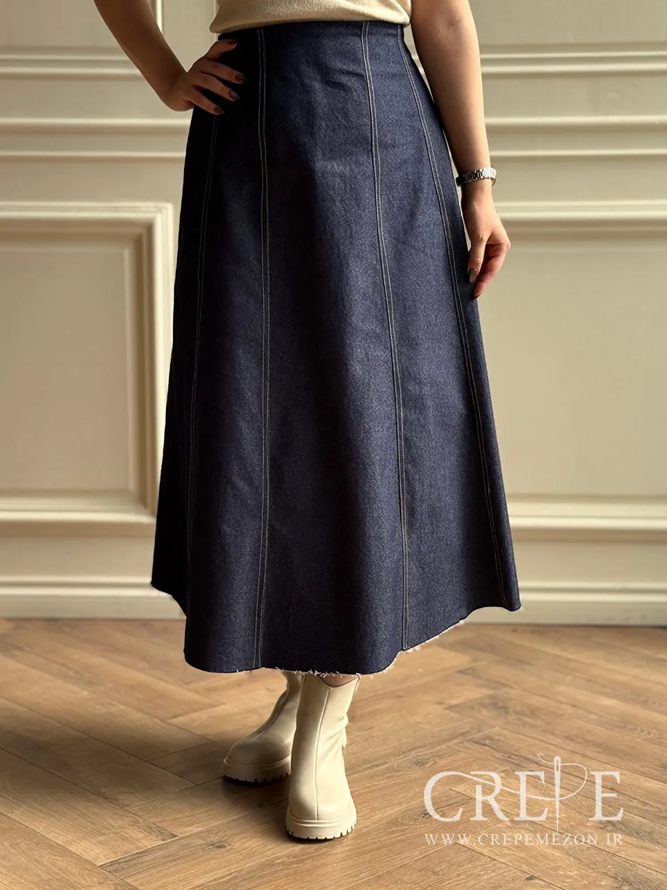 دامن بلند جین یک دامن کژوال زیبا که از جنس جین بوده و با طراحی نسبتا آزاد موجود شده است. این دامن کاربردی با انواع بافت و کت کراپ به زیبایی ست می شود.