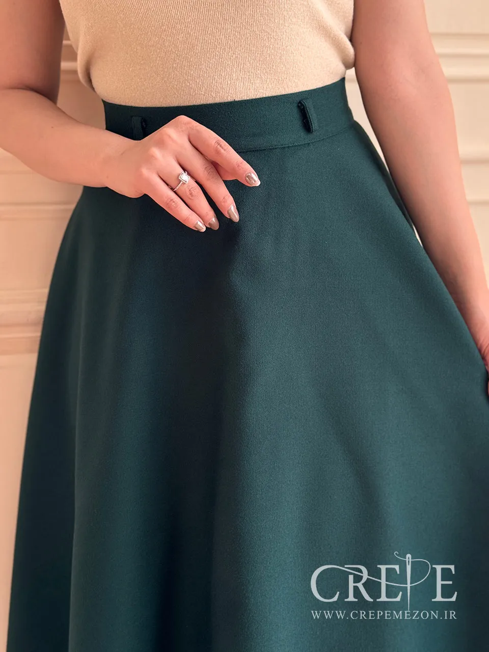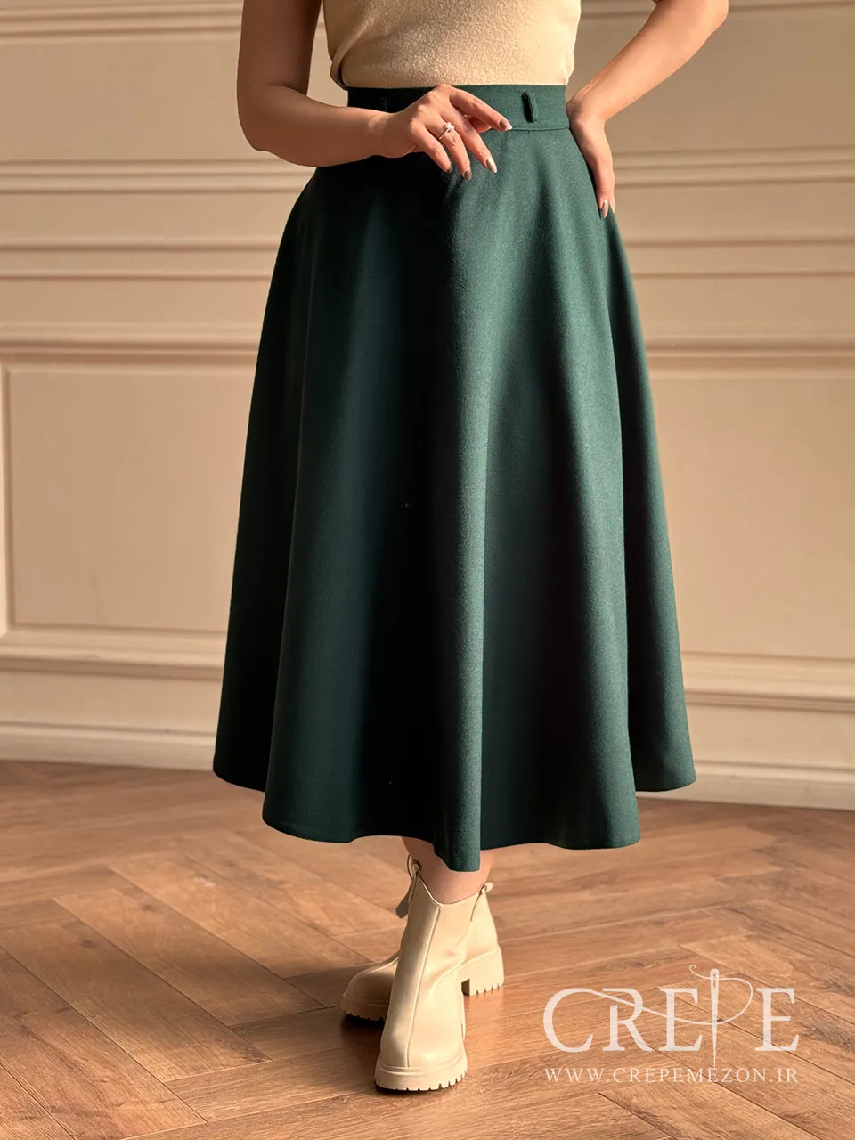دامن نیم کلوش کشمیر یک دامن پاییزه که از جنس کشمیر بوده و در رنگبندی سبز و زرشکی و سایزبندی 44-38 موجود است. این دامن زیبا برای پاییز انتخاب کاربردی است.