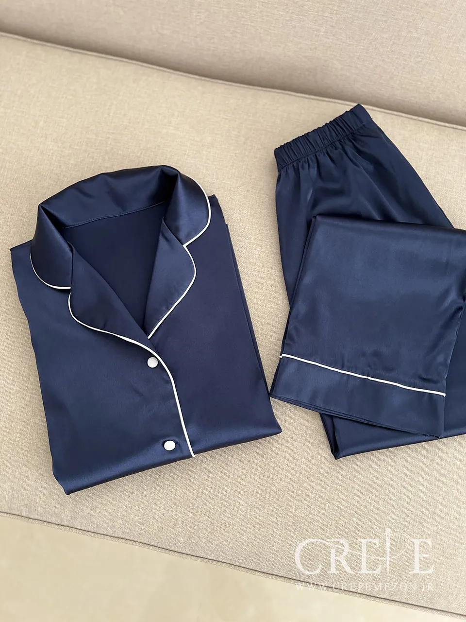 بلوز شلوار ساتن جلو دکمه