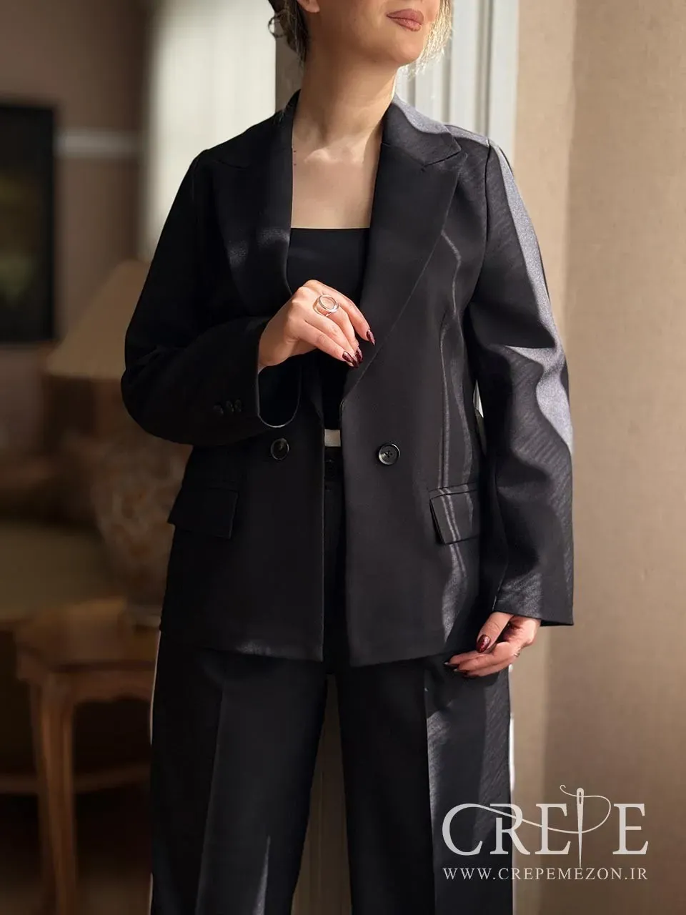 بلوز ساده : یک بلوز یا پیراهن ساده و کلاسیک (مثل سفید یا کرم) زیر کت بپوشید. این ترکیب به شما ظاهری رسمی و شیک میدهد.