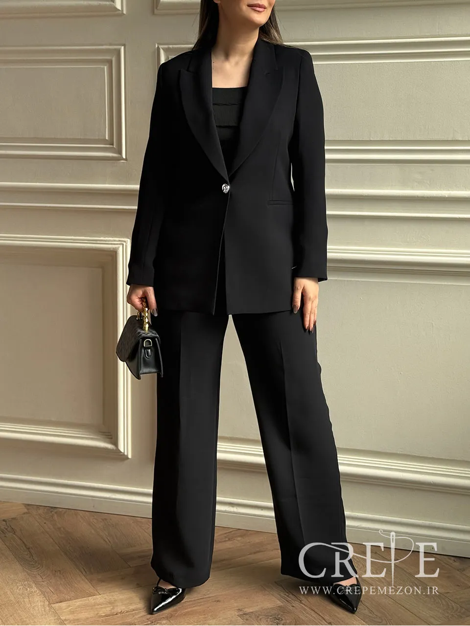 کت شلوار جیب نما یک ست زنانه زیبا که از جنس کرپ کنزو می باشد و کت با آستر رویال کاور شده است. این ست کاربردی در رنگ مشکی و سایزبندی 44-38 موجود شده است.