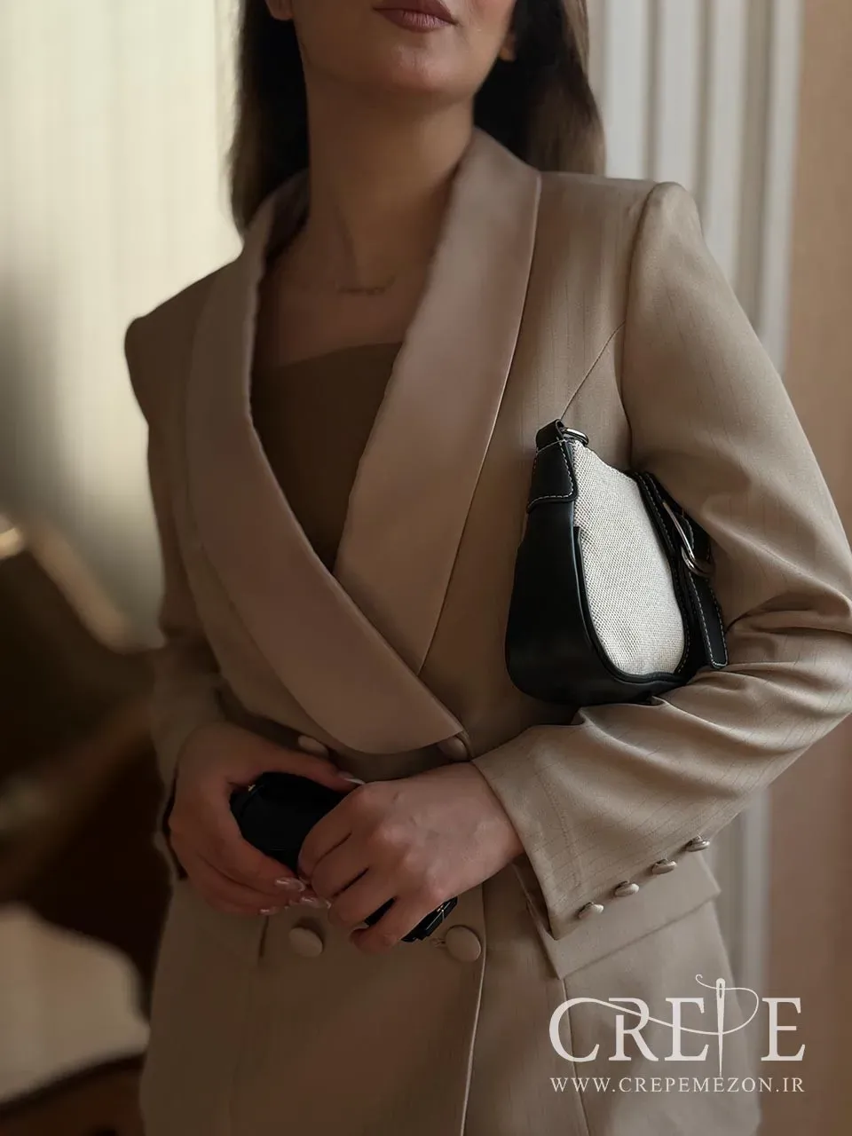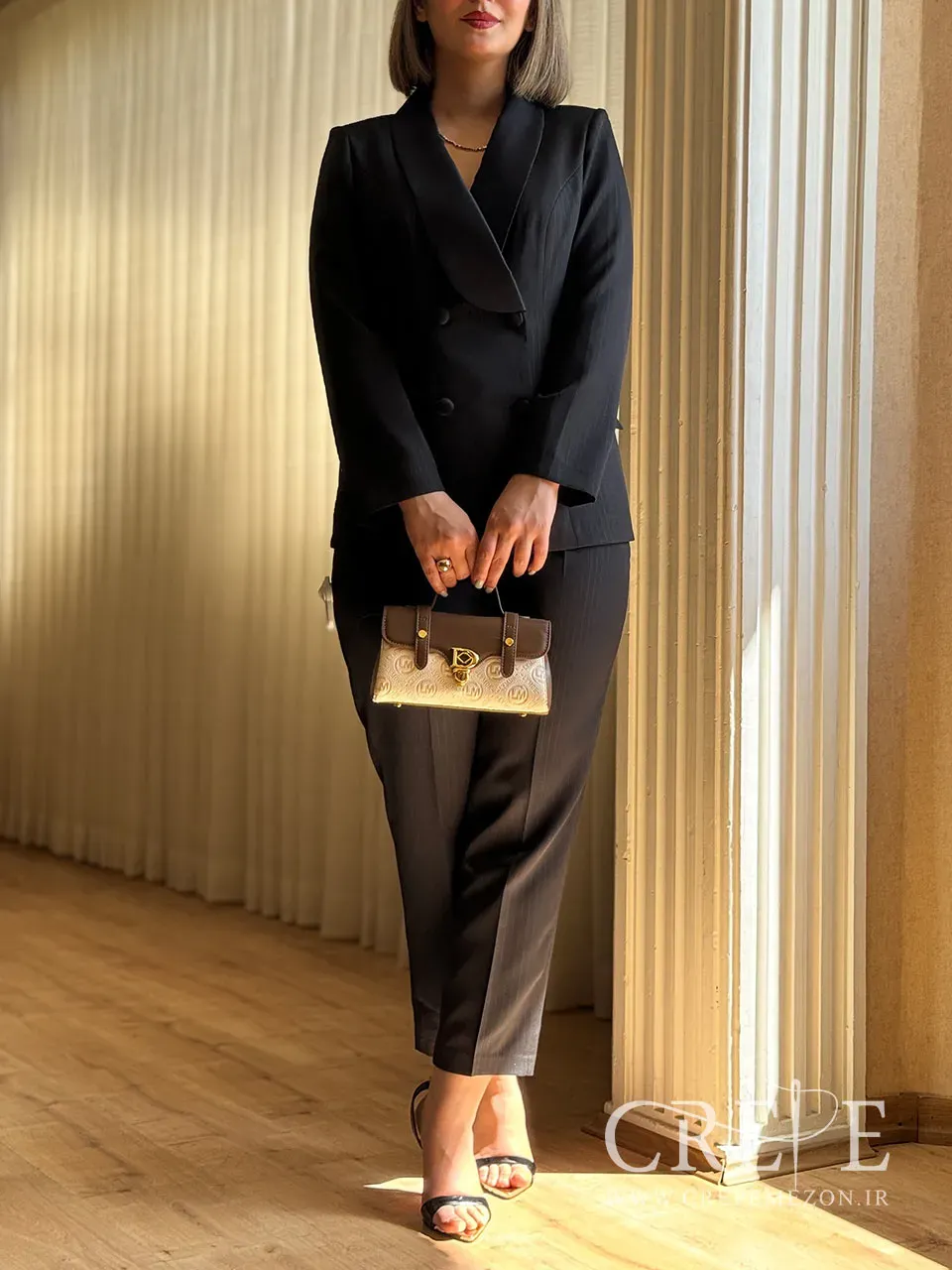 ست کت و شلوار یک ست مجلسی شیک و زیبا که در حال حاضر در رنگبندی مشکی و کرم موجود است. این ست مجلسی یک انتخاب عالی برای مجالس و مناسبتهای ویژه به حساب میآید. این کت و شلوار از جنس کرپ مازراتی اعلا تهیه شده است. پارچه کرپ مازراتی به دلیل بافت نرم و لطیف خود، مناسب برای طراحیهای کلاسیک و مجلسی است. همچنین، این پارچه معمولاً در برابر چروک شدن مقاوم بوده و ظاهری شیک و مرتب را حفظ میکند. پارچه این کت شلوار دارای شاین خطدار است که به آن جلوهای خاص و مدرن میبخشد. این ویژگی میتواند برای جلب توجه در مجالس و مهمانیها بسیار مؤثر باشد. یقه آرشال که از جنس ساتن است، به کت ظاهری شیک و زنانه میبخشد.